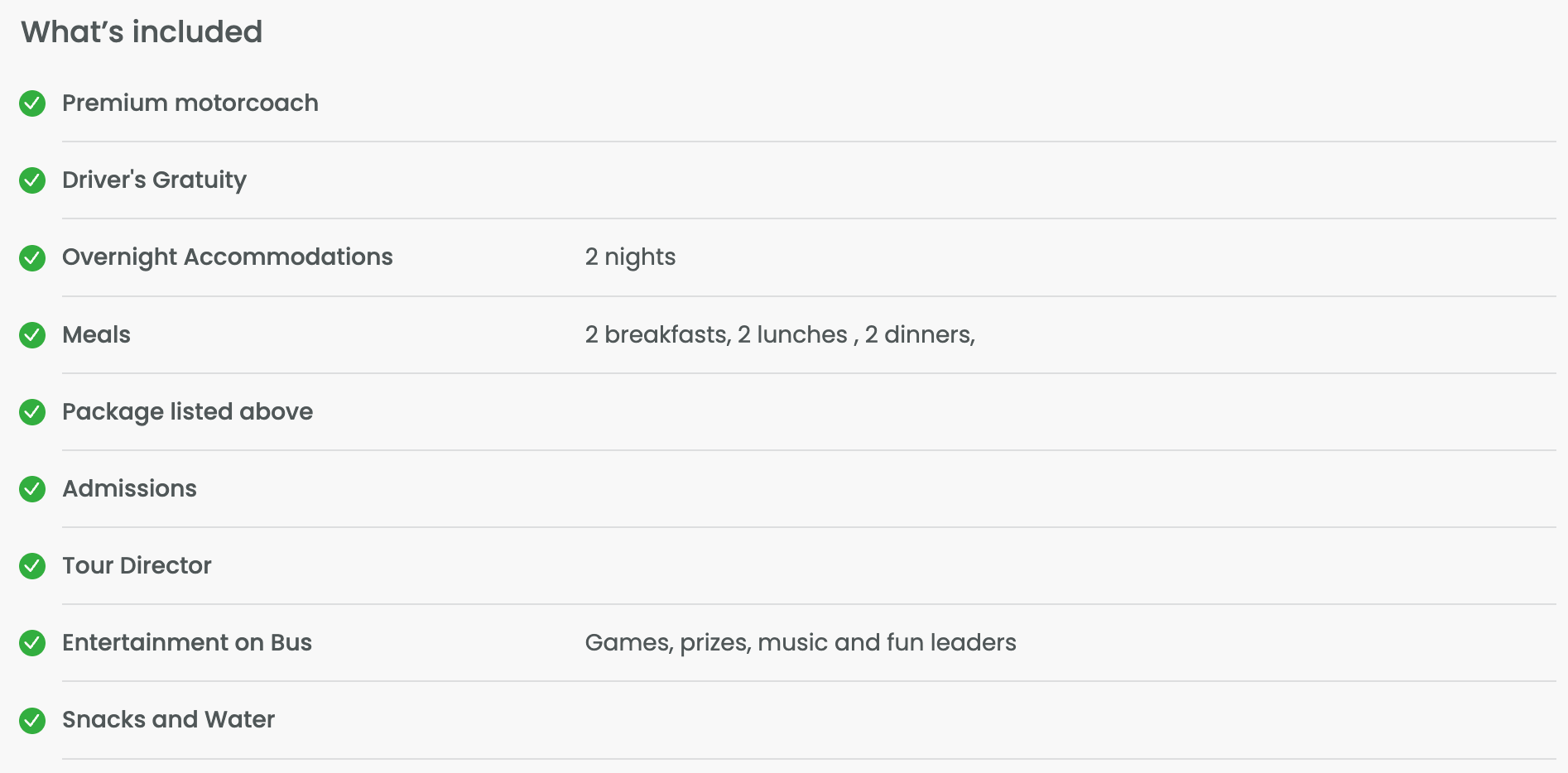 Package includes motor coach transportation, driver’s gratuity, trip leader, snacks, game, prizes, 3 nights of accommodations, 3 breakfasts, 2 lunches, 2 dinners, $40 slot play, lunch at Nordic Lodge, Tall Ships Cruise, Guided Tour of Historic Boston, Free Time on your own to visit the Tall Ships, Admission to the Boston Tea Party Ships and Museum, Charlestown Navy Yard , USS Constitution Constitution Museum, Constitution Visitor's Center, USS Cassin Young Tour, Harvard and Cambridge Tour, Lexington and Concord Tour, Historic Boston Highlights Tour , Departures from Toms River NJT Bus Station, Target (Brick) and Jackson Church Times TBD