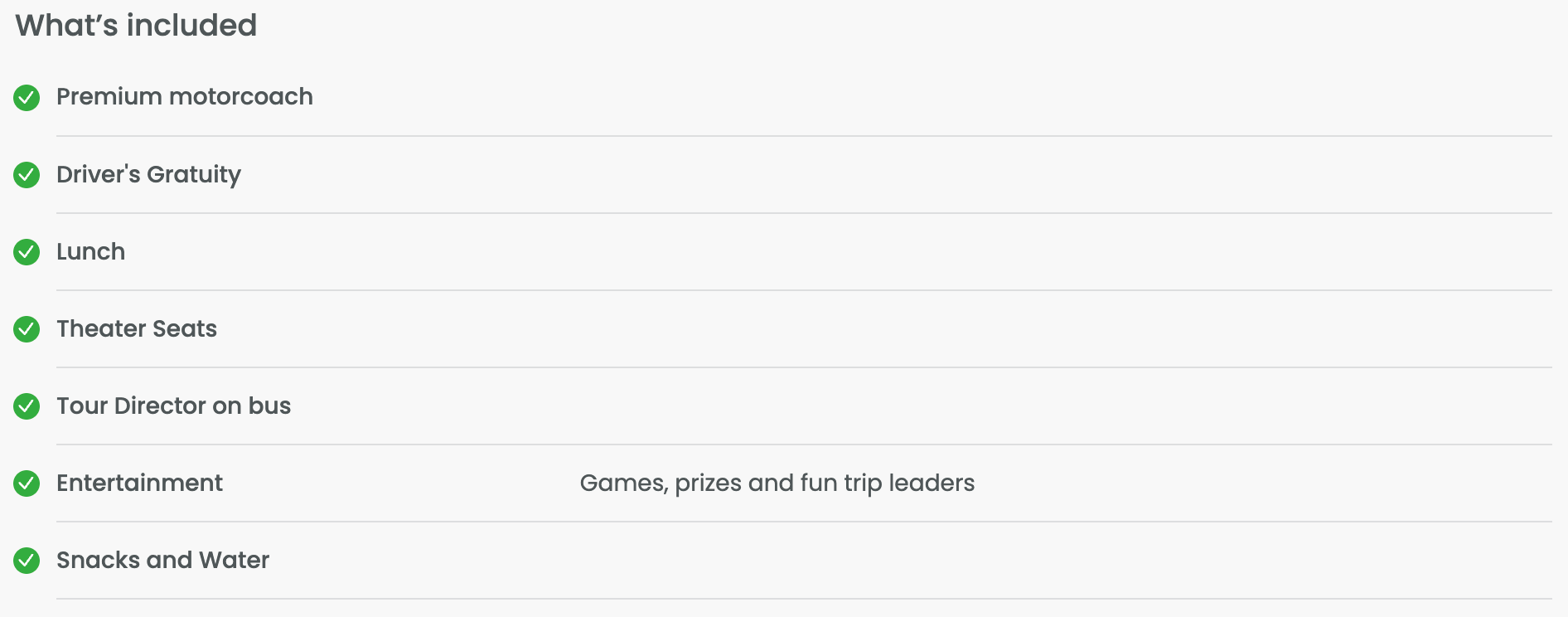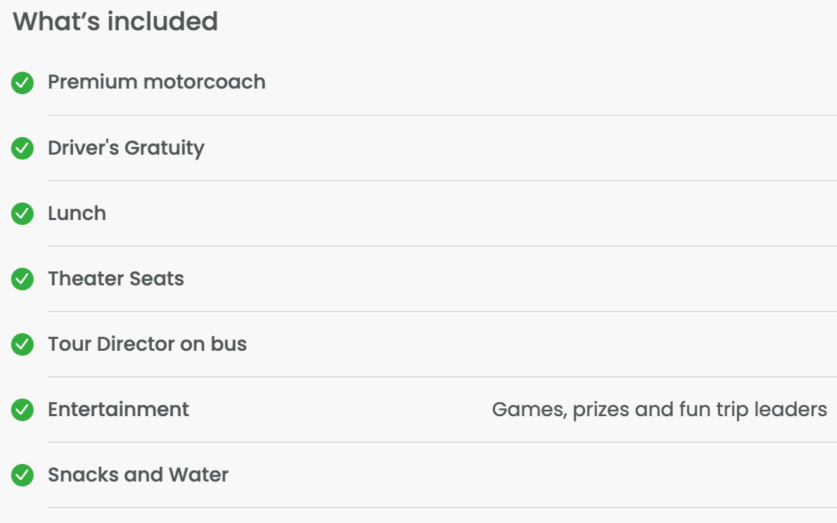 VERY IMPORTANT TO CHECK ITINERARY FOR TIME CHANGES. Provided 1 week prior.