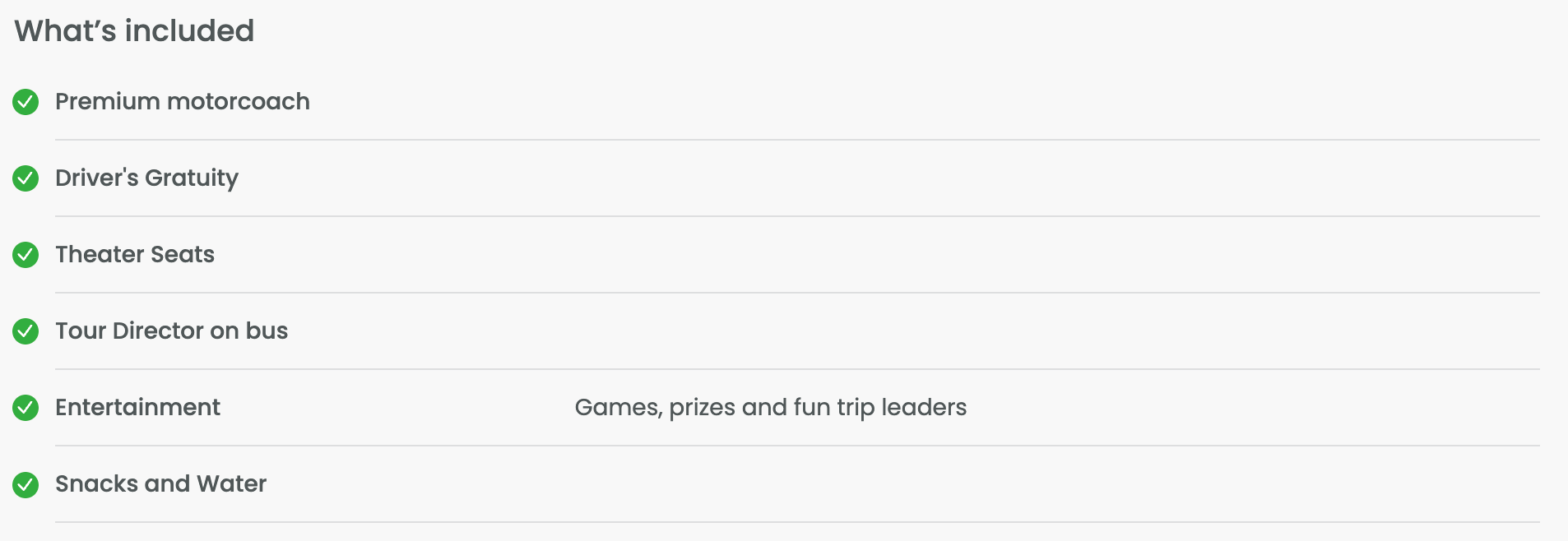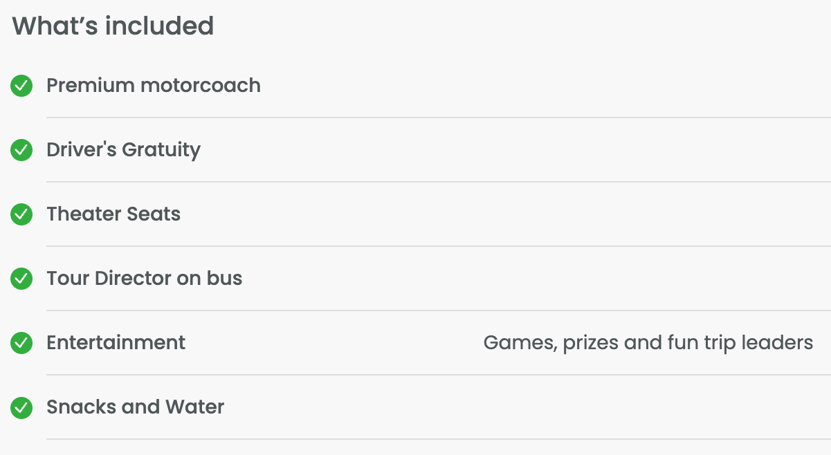 VERY IMPORTANT TO CHECK ITINERARY FOR TIME CHANGES. Provided 1 week prior.