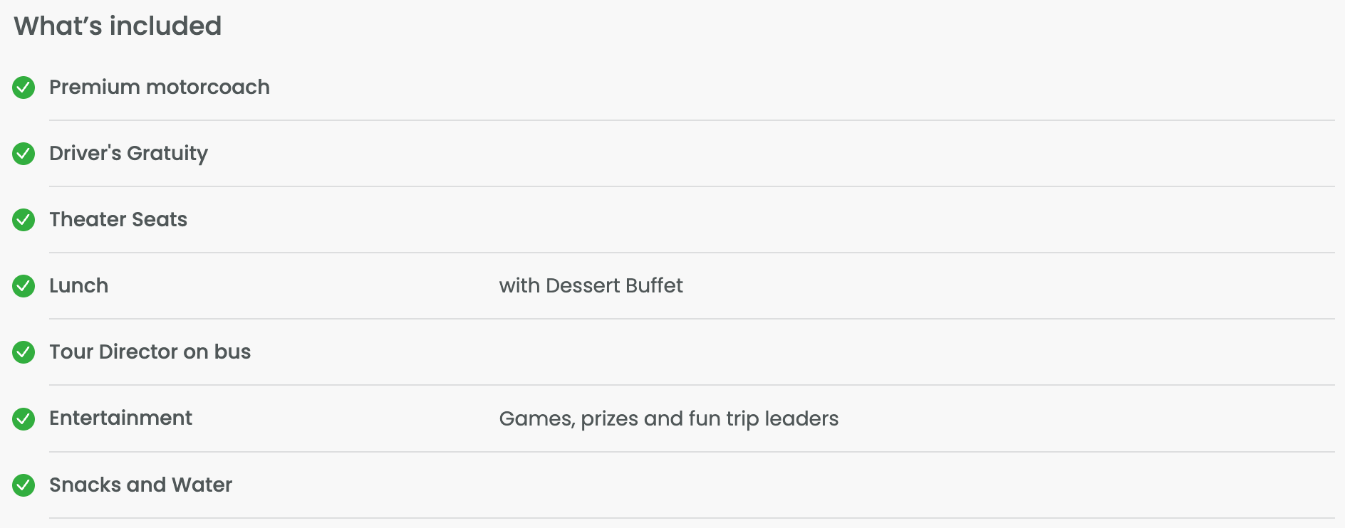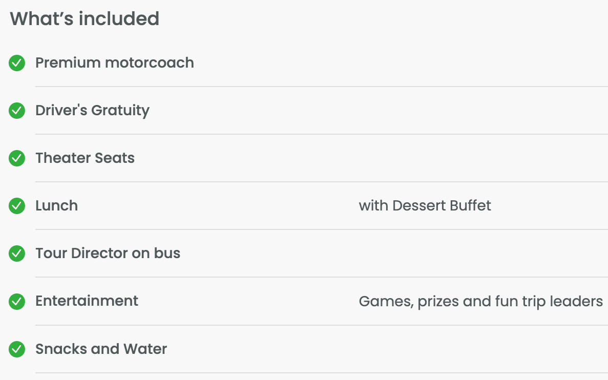 This year enjoy the magic of your favorite Christmas skits, songs, costumes and sets. It’s all about creating the perfect blend of Christmas tradition and holiday joy with those memorable moments. Package includes motor coach transportation, Lunch theater seats, lunch, driver's gratuity and trip leader. Bus departs Garden State Parkway, Forked River Rest Area 9:00 AM, Target Brick 9:30 AM, Exit 98 Park and Ride 9:45 AM $145