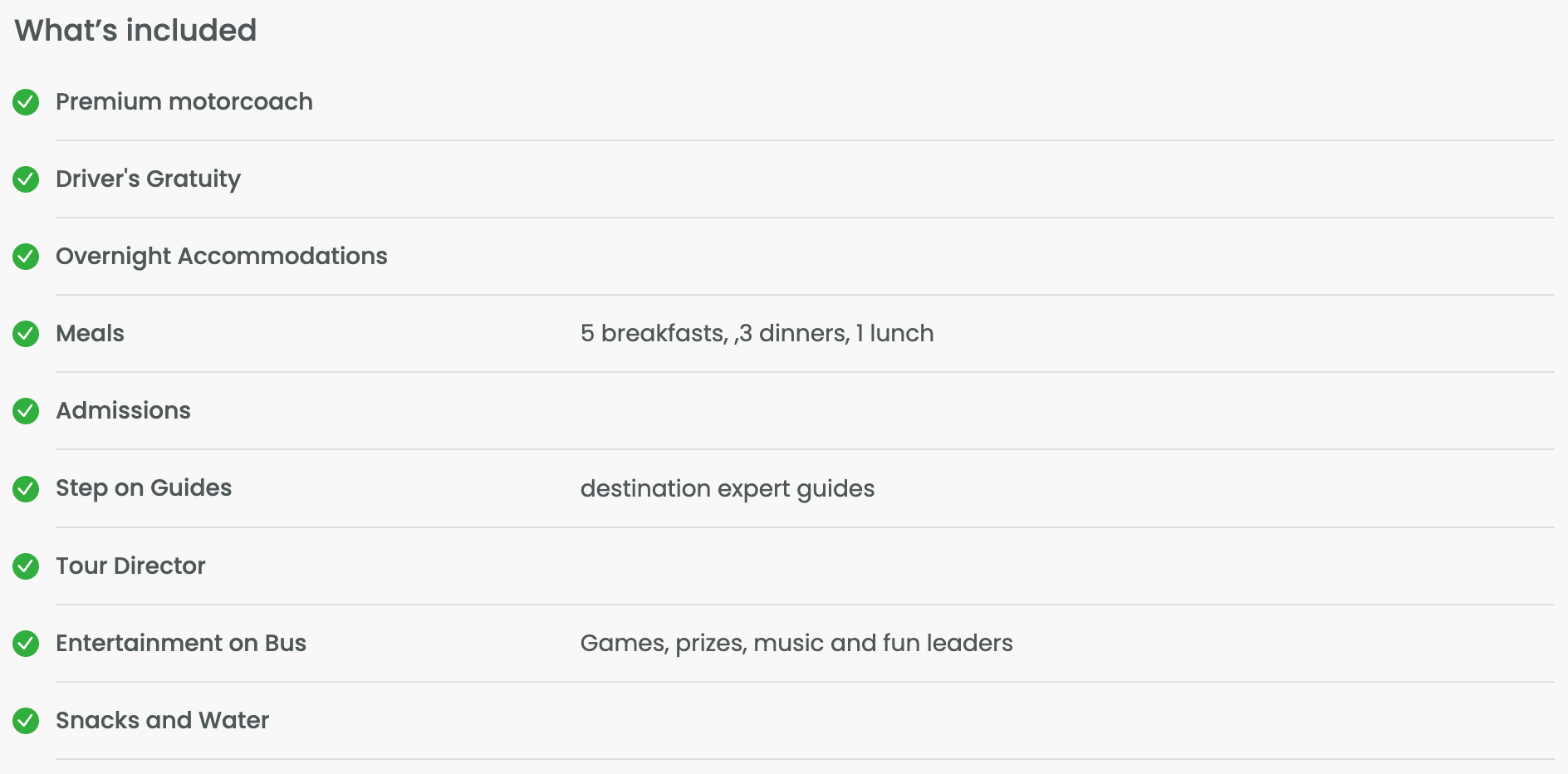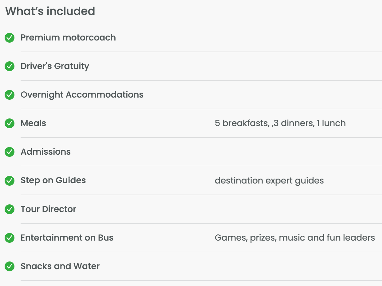 Enjoy the Smoky Mountains with great music, National Park tours, Tastings, southern cooking, Dollywood and more! Your tour will include Great Smoky Mountain National Park tour, tour and tasting at the Ole Smoky Moonshine distillery in downtown,lunch and shopping in downtown Gatlinburg, Titanic Museum Pigeon Forge, four course feast and Christmas show at Dolly Parton’s Stampede Dinner attraction, Country Music Variety show, Dollywood Christmas Festival featuring special crafters and decorations, Country Tonite Theater, Array Christmas Show and more! You will enjoy 3 nights at the Dollywood’s DreamMore Resort. Package includes motor coach transportation, driver’s gratuity, 5 nights hotel accommodations, 3 dinners, 5 breakfasts, 1 lunch, tickets and admissions, guides, trip leader and all tours.