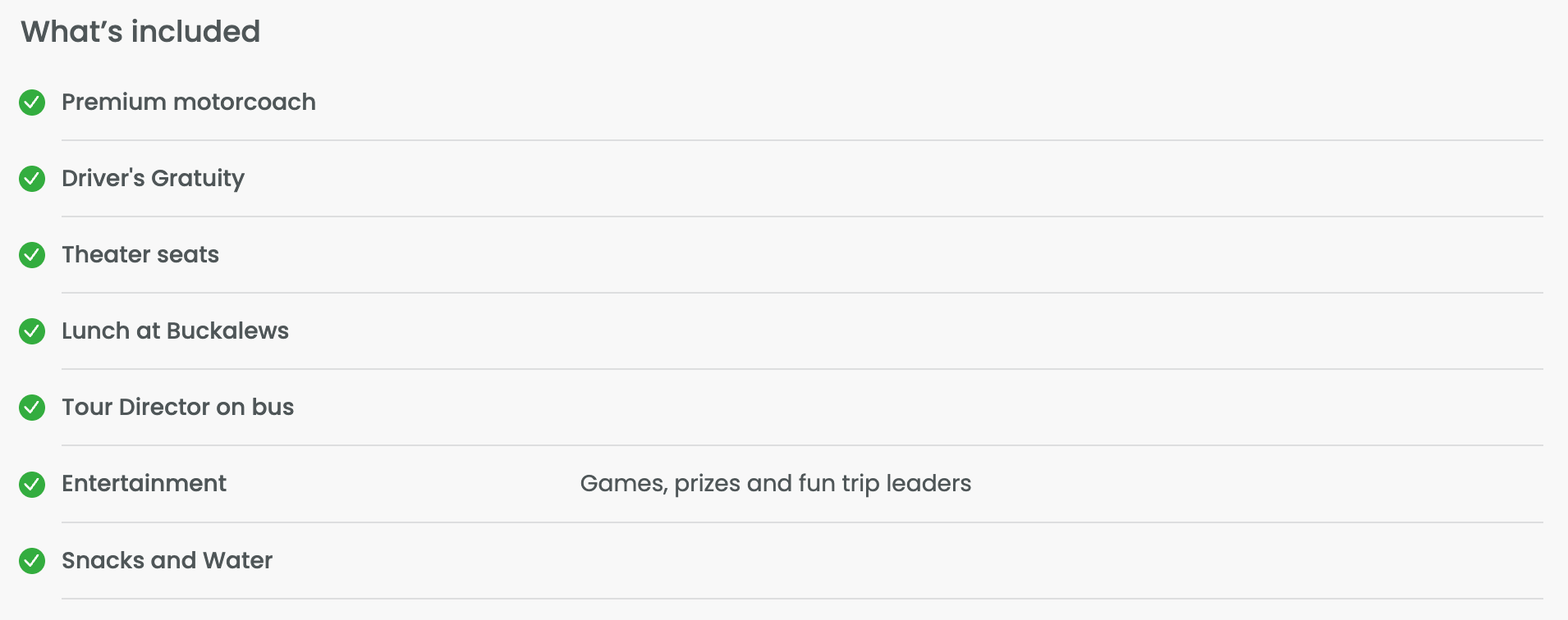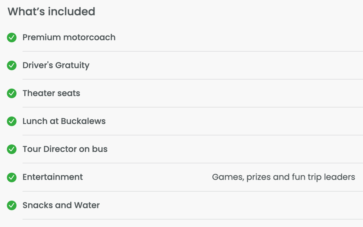 Pretty Woman: The Musical will lift your spirits and light up your heart. Lunch at Buckalews prior to the show. Package includes theater seats at Surflight, lunch inclusive of gratuity, trip leader, driver’s gratuity, snacks and water, games and prizes and 56 passenger motorcoach. Bus departs GSP Park and Ride Exit 98 10 AM, Target Brick 10:15 AM, Celia Cruz Rest Area, Forked River 10:30 AM approximate 5:30 PM return $145