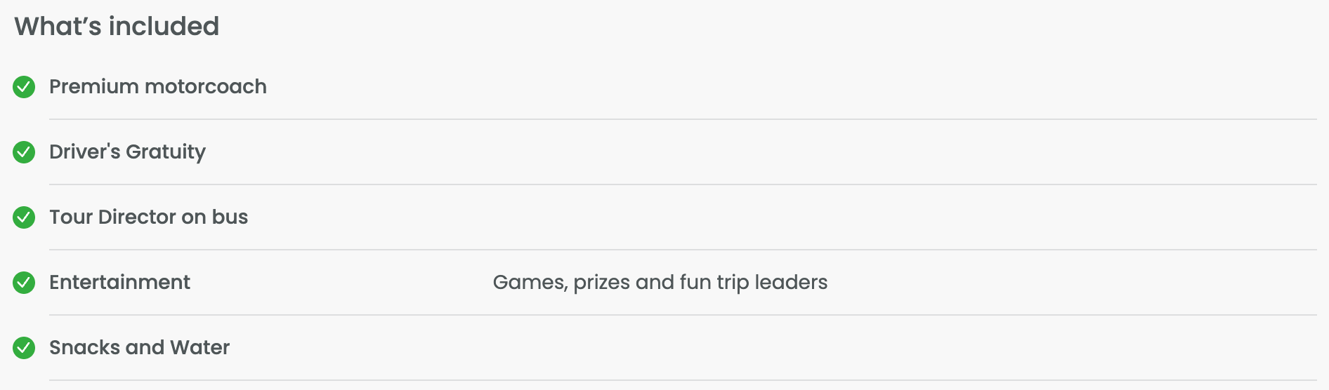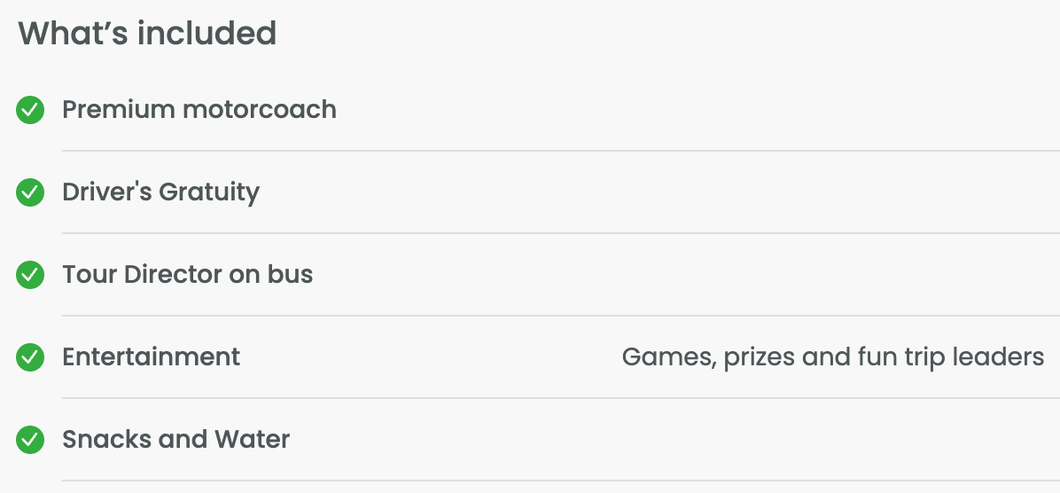 VERY IMPORTANT TO CHECK ITINERARY FOR TIME CHANGES. Provided 1 week prior.